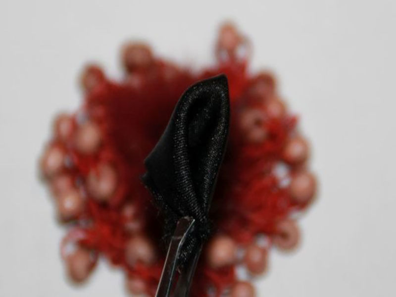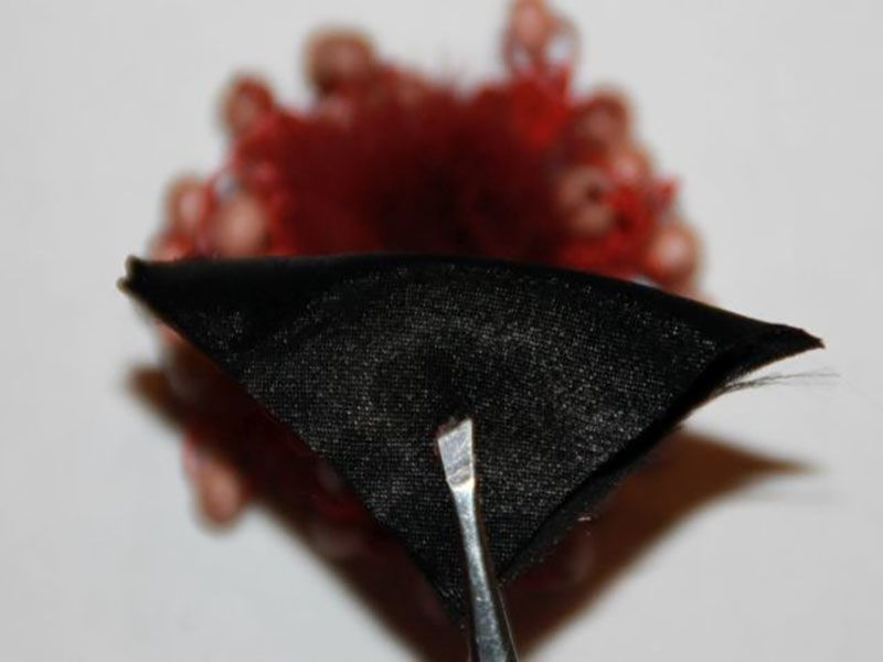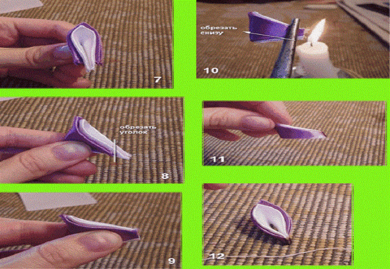 - Сега получените странични ъгли се свързват чрез издърпване назад. Всички ръбове се подравняват и се притискат с пинсета. Отрежете излишното по хоризонтала. Обработете всички ръбове с огъня и внимателно ги притиснете с пръсти.