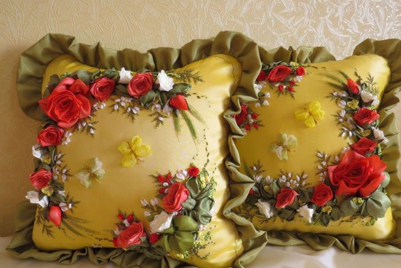 Техниката ви позволява да правите не само аксесоари за коса и тематични занаяти. Листенца от сатенена панделка с декорации могат да бъдат завършек на някои елементи. Те не само придават изключителен вид, но и добавят нотка на домашен декор.