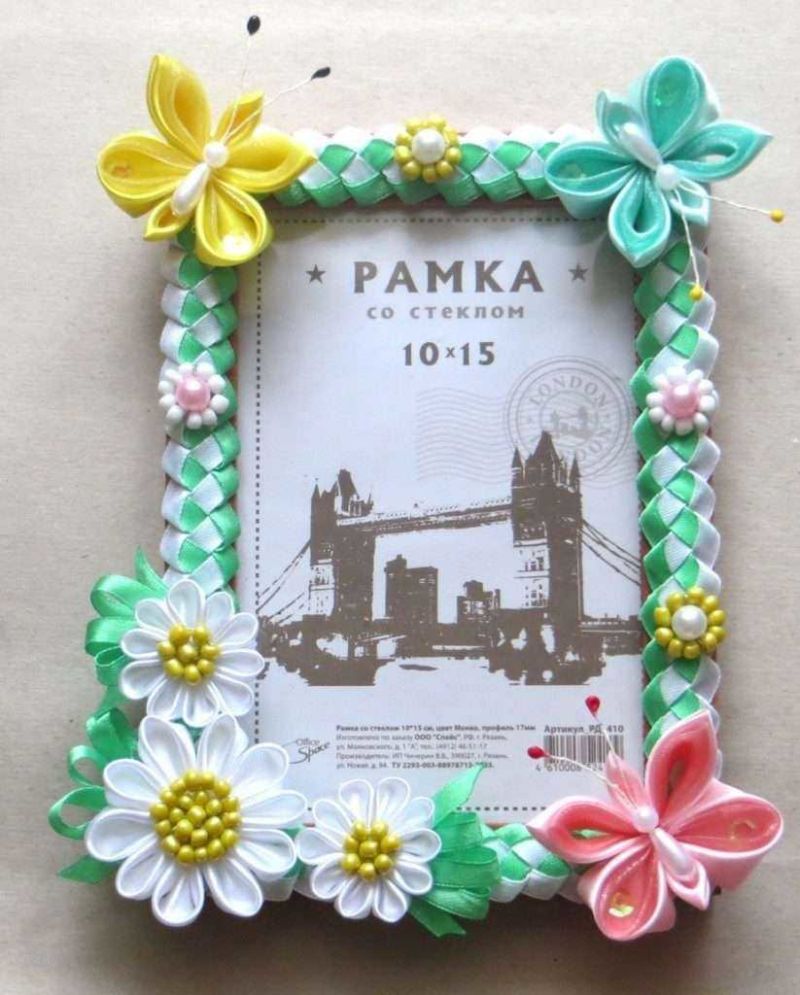 Такава рамка може да бъде украсена с цветя или пеперуди от сатенени панделки. Важно е да не прекалявате с декорацията на фоторамката. Тя трябва да изглежда естествено.