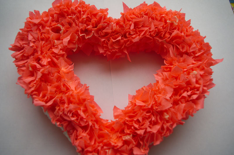 Обемно сърце, направено от вестникарски сламки