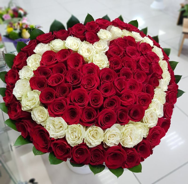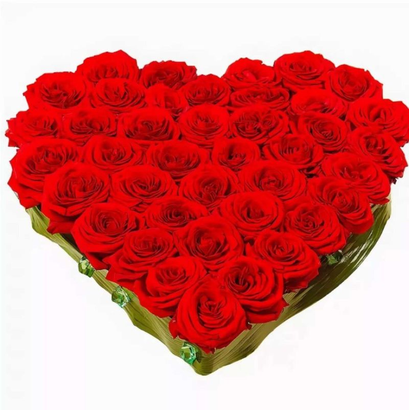 Такъв подарък ще очарова всяка дама. Можете да подредите цветята във формата на венец-сърце или да направите самия букет в такава форма. Не е трудно и можете да помолите цветарите да го направят срещу допълнително заплащане.