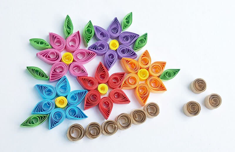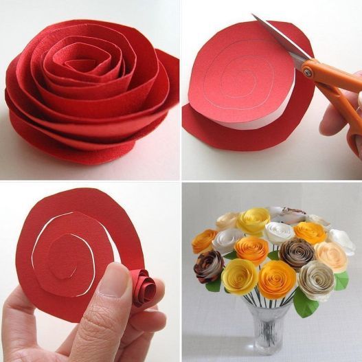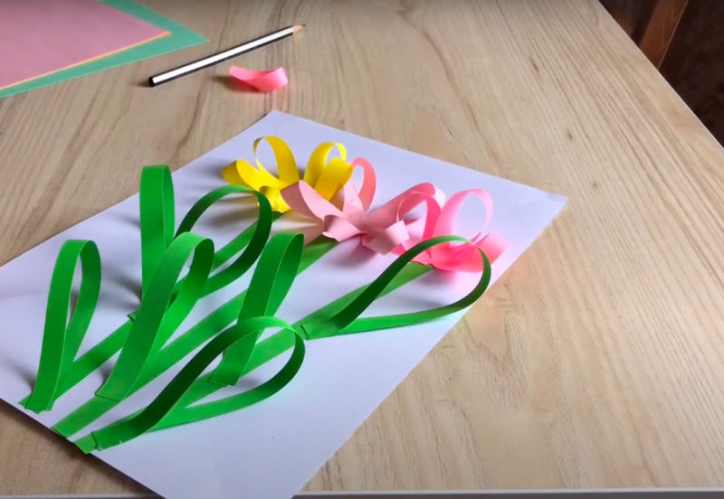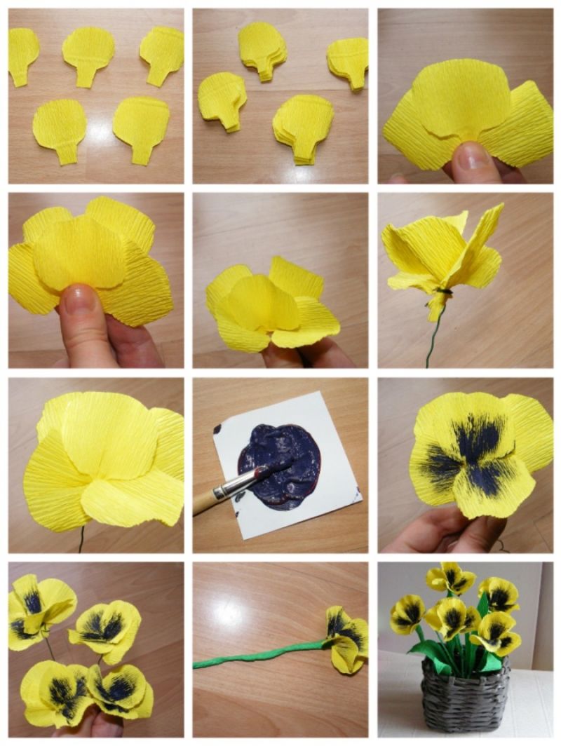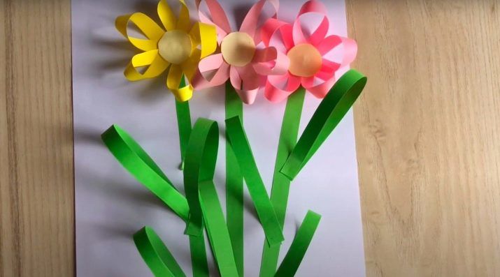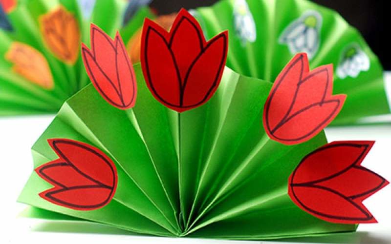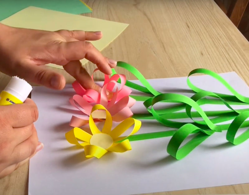 Цветята могат да се изработят от цветна хартия. Вариантите са лесни и всяко дете може да ги направи: