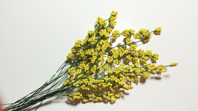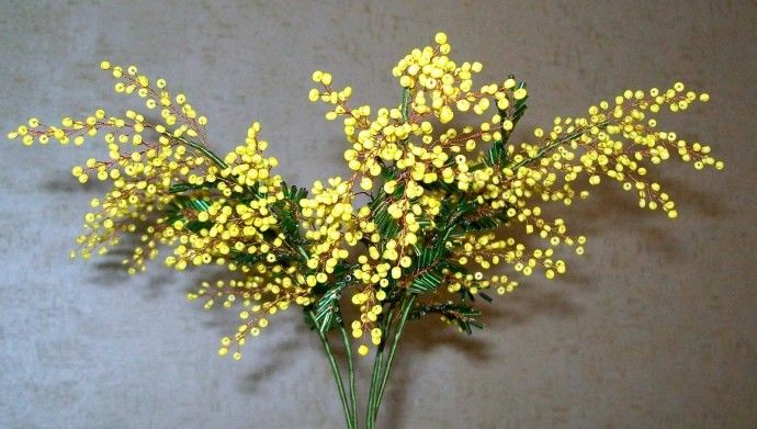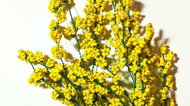 Интересен подарък за Осми март ще бъде мимоза, изработена от мъниста. За да работите, трябва да се подготвите: