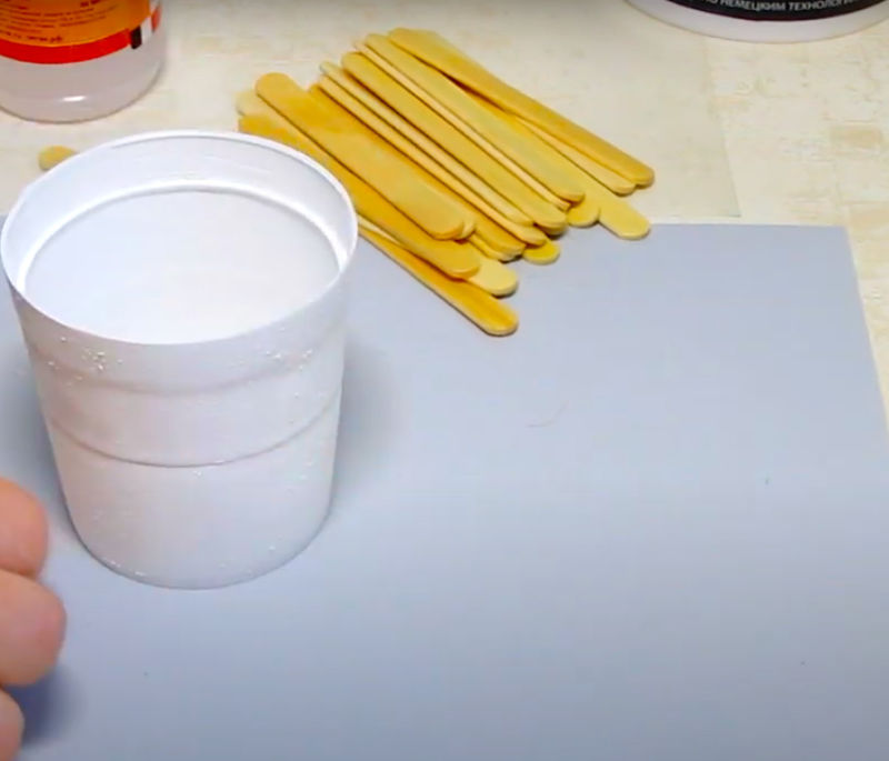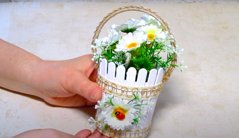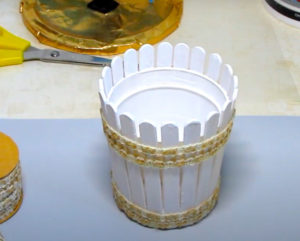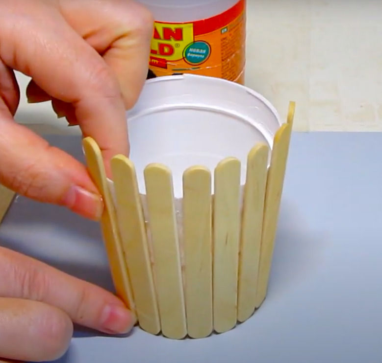 Вазата (всеки пластмасов или стъклен съд) може да бъде украсена отвън с паста, като се залепи с PVA.