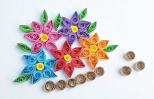 - Първо трябва да направите венчелистчетата. Изрежете от хартията лентички с широчина 0,5 см и дължина 20 см. Увийте панделката на тънка игла или пирон. Образува се плътно усукване (навиване).