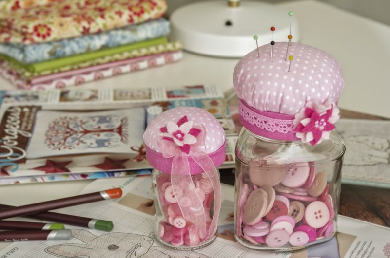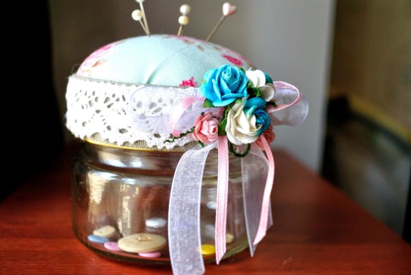 Бурканът за съхранение с възглавничка за щипки е полезна вещ за всяка дама вкъщи. Всички жени ще се радват да получат такъв подарък. Какво е необходимо: