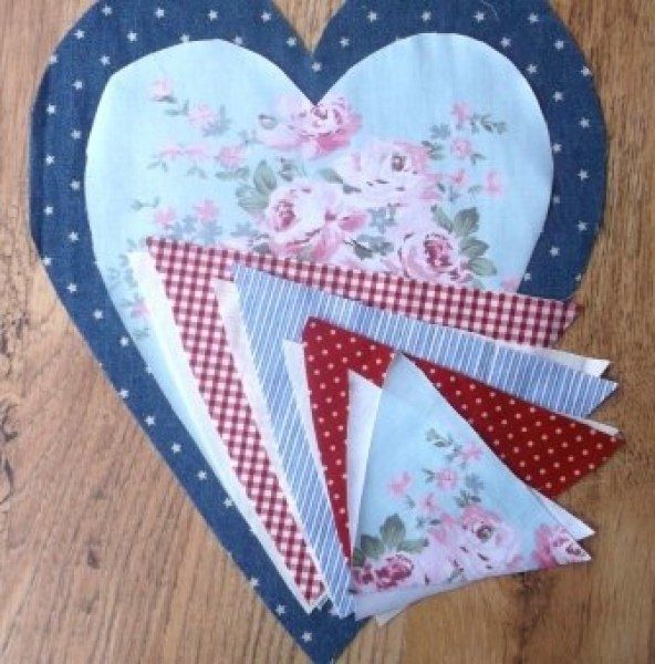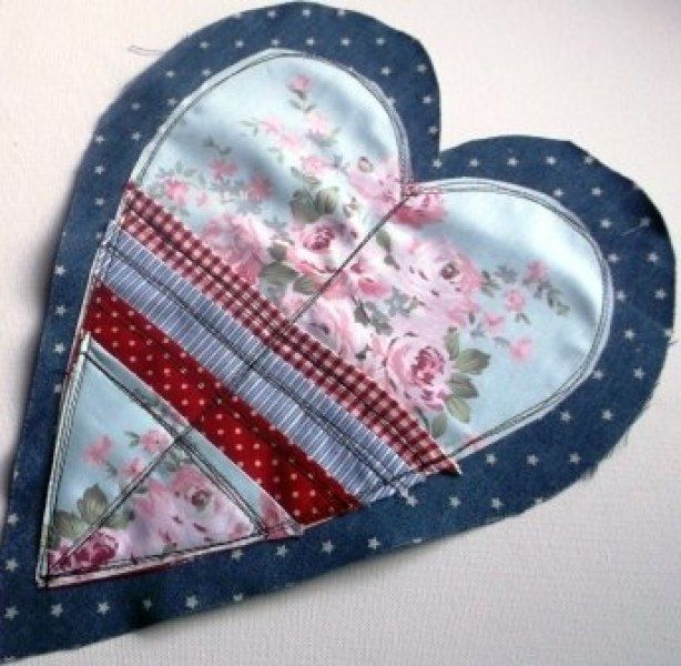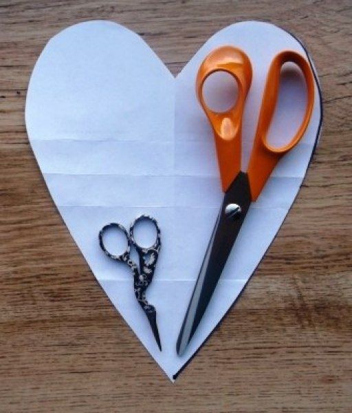 - платът се избира гъст на райета, като се сгъва два пъти, от него се изрязват 2 модела на голямото сърце (надбавките за шевовете са задължителни);