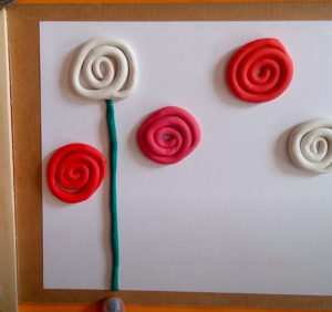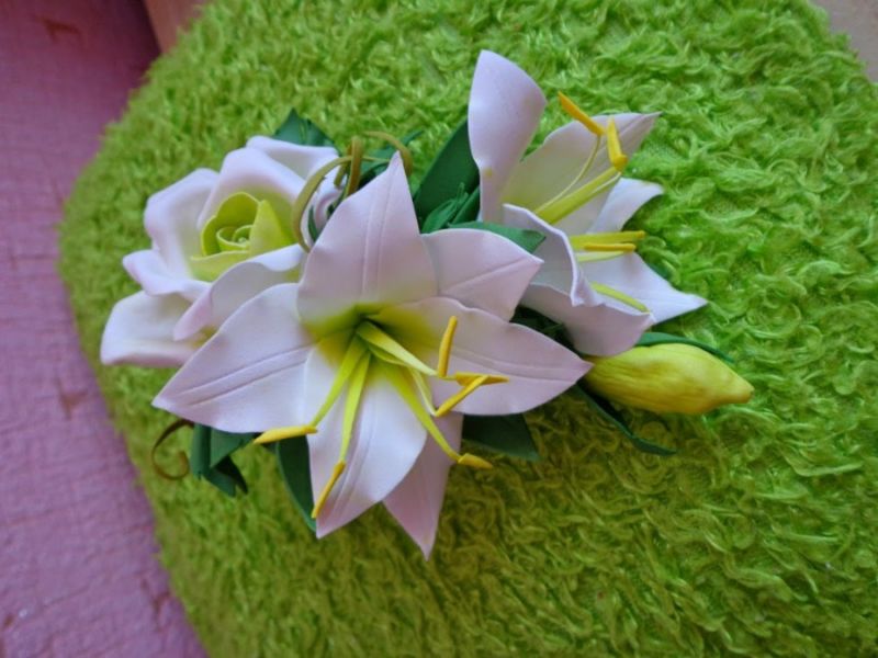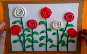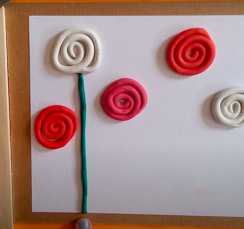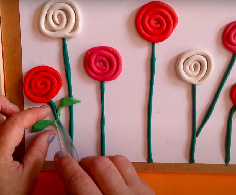 - Горният край на венчелистчето е коригиран във формата на отваряща се пъпка. Центърът е извит от жълта глина и е поставен в получената заготовка. Стъблото е изработено от зелена глина, върху която се поставя цветето.