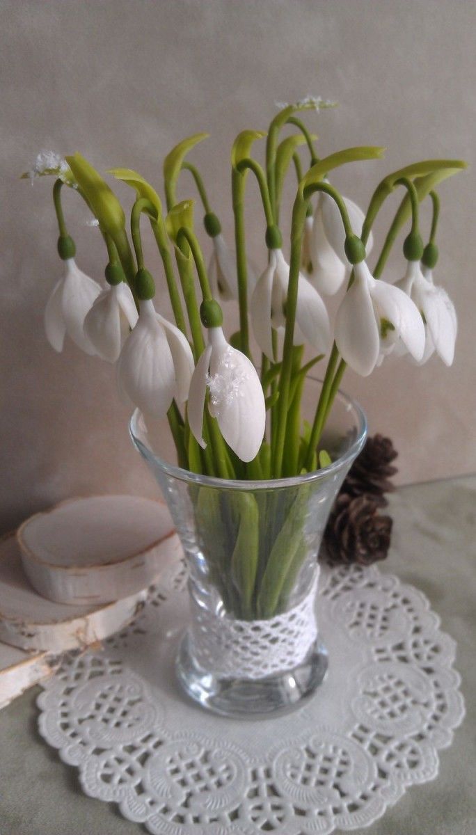 Красивите полимерни калинки могат да се направят за няколко минути. Такива занаяти могат да се правят с децата за 8 март. Най-добре е работата да се извършва с ръкавици. Подходящи са два цвята глина, напр. бял и син. Правят се два малки колбаса, които се усукват и се завиват на топка: