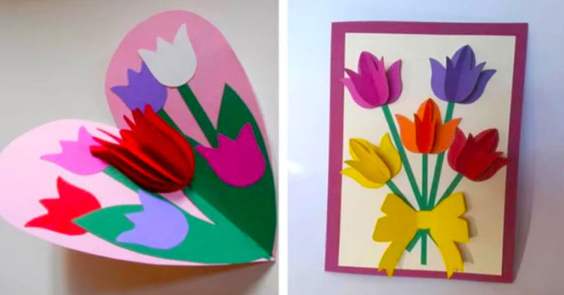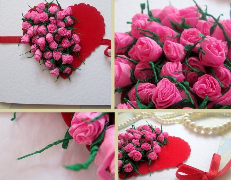 Ръчно изработени занаяти за 8 март: майсторски класове за изработване на картички и цветя (96 снимки)