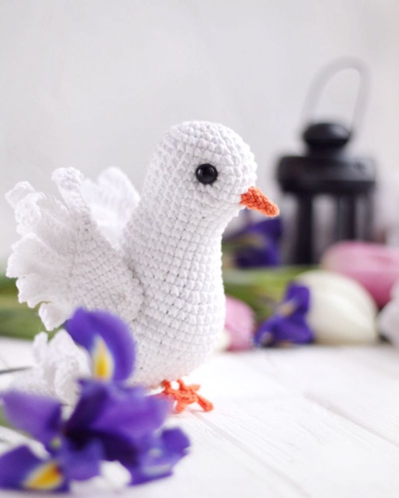 Ако имате малко умения за плетене на една кука, можете да създадете красив гълъб от конец. Започнете с главата и гърдите. Описание стъпка по стъпка: