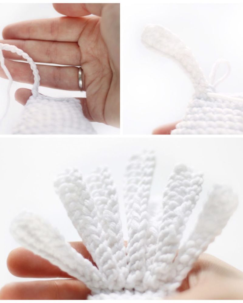 - Ресните се плетат, както следва: 10 възходящи бримки, 1 прът.