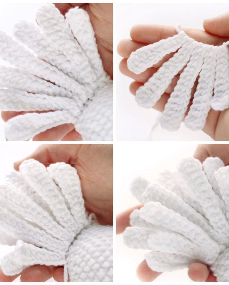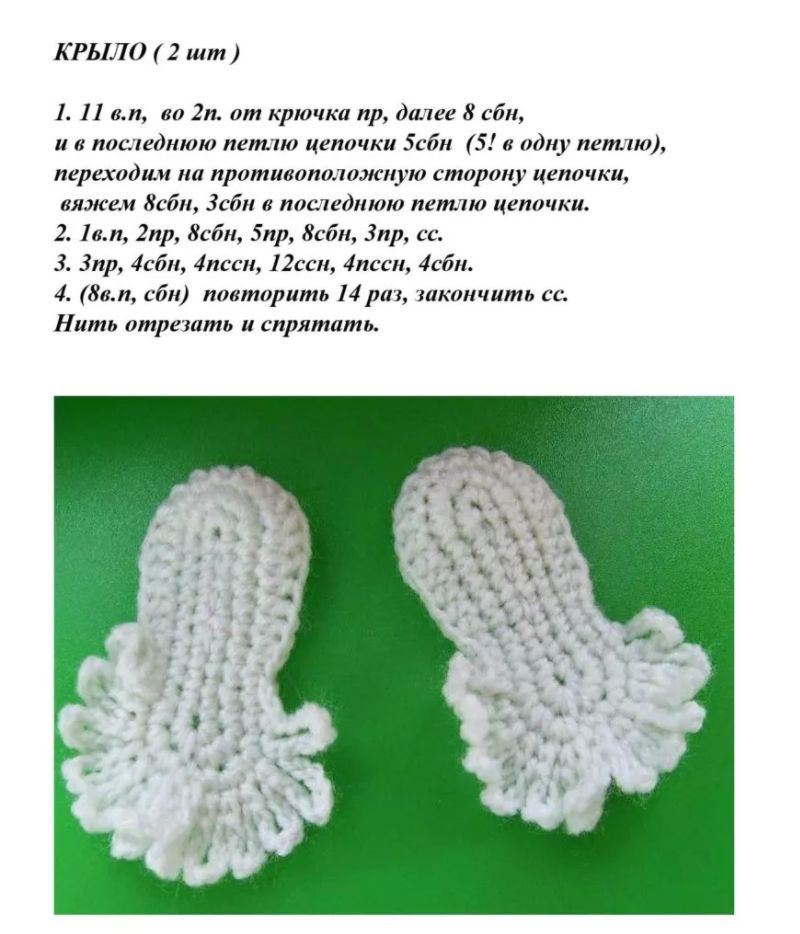 По този начин се плетат две крила. Те могат да бъдат пришити или прикрепени към торса.