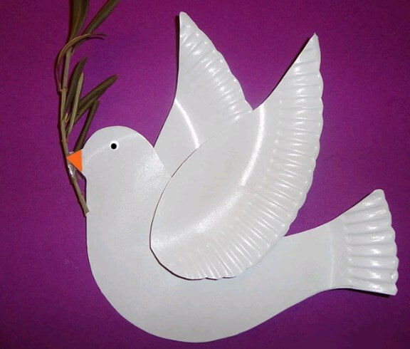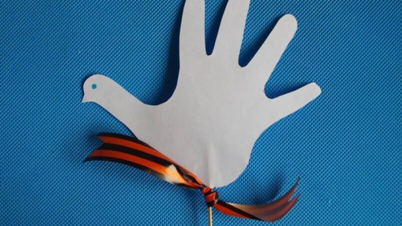 Обикновено това е стрък мирта. Направете такъв занаят за 9 май в училище, който може да бъде направен от различни материали, които са под ръка. Най-често гълъбът се изработва от хартия и прежда.