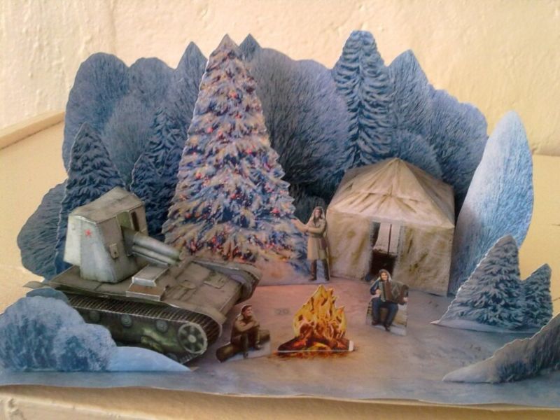 - Разпечатайте картата за 9 май на червена хартия. Тя се изрязва и залепва в горния ляв ъгъл;