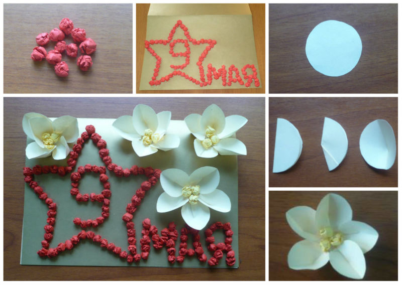Ръчно изработени занаяти за 9 май: майсторски класове за декориране на картички, апликации, продукти за деца в училище и детска градина