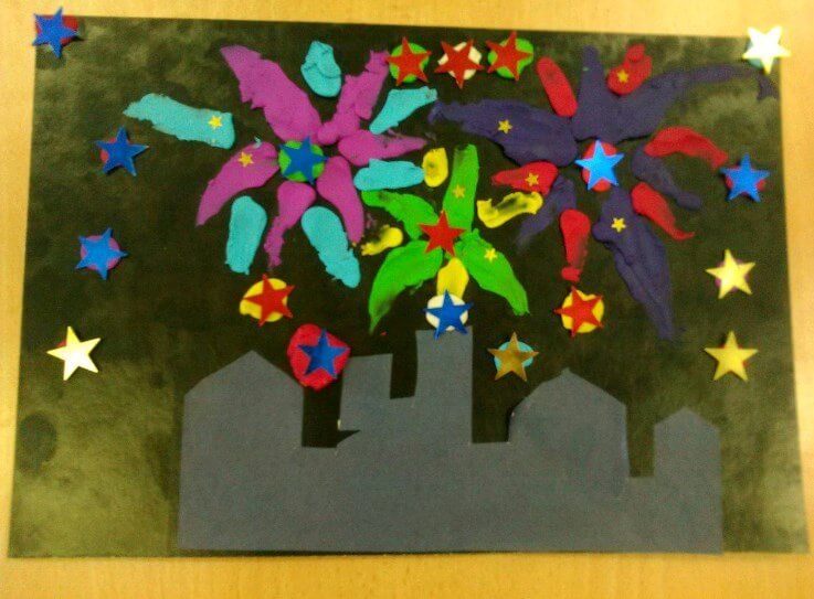 Ръкоделие за май 9 от пластилин децата правят различни. Например фойерверки. Той има много цветни нюанси, така че за създаването на пощенска картичка, изобразяваща ярките проблясъци в нощното небе, е необходим пластилин с различни цветове.