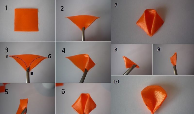 - парчетата се сгъват по диагонал, след което краищата им леко се разтопяват, за да се съединят;