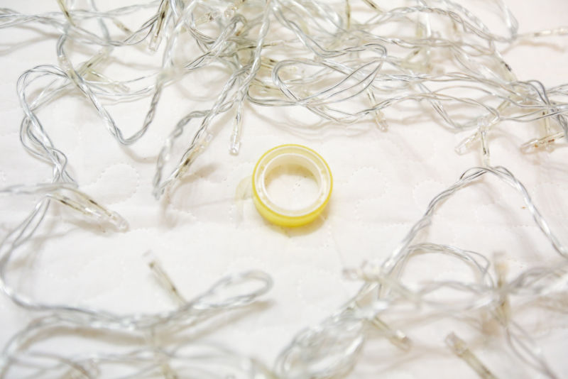 - Изрежете 12 ленти за елхата от тюл;