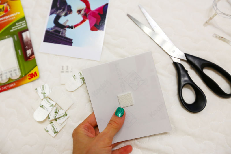 - С детето във формата на рибена кост, снимките са приложени. Те могат да бъдат прикрепени с помощта на двойнозалепваща лента - това е безопасно.