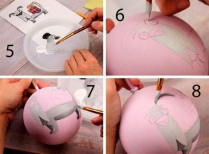 - Отделно украсена с върха - шапка. Залепена на върха на топката памук.