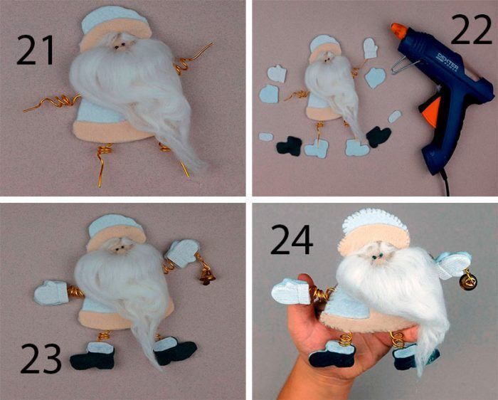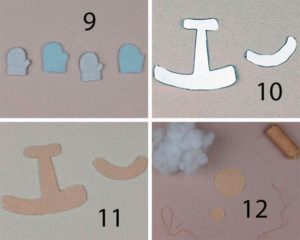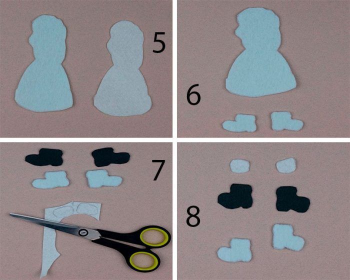- Изрежете детайли от филц - нос, очи и ръце.