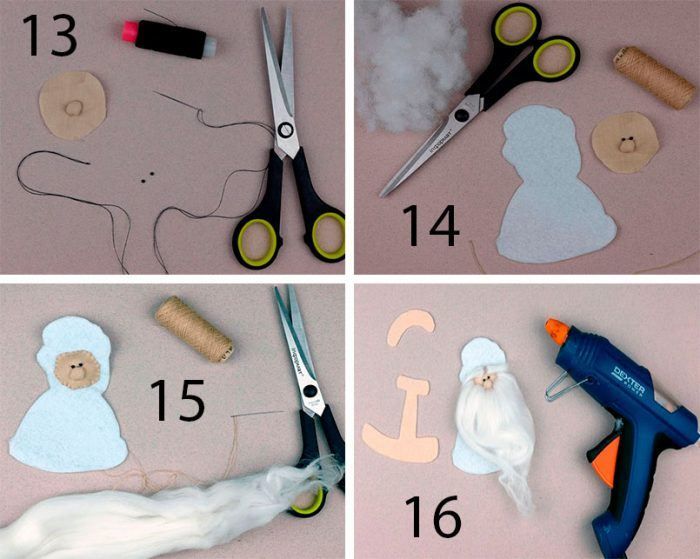 - Червеният шал е изработен от филц. Краката могат да бъдат изработени от мачове и боядисани в кафяво.