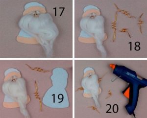 - След това изрежете брадата от бяла хартия и я залепете към формата.