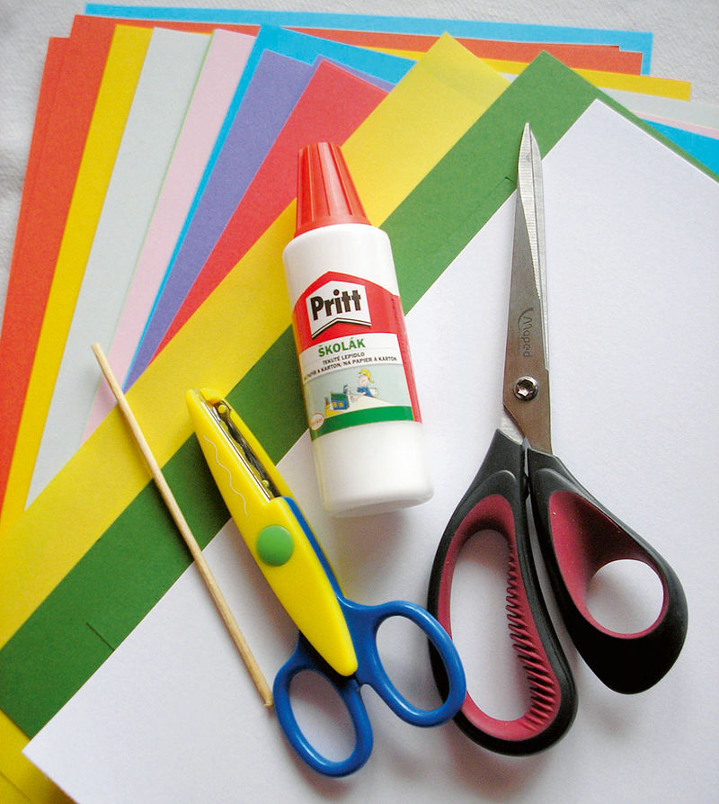 - цветна хартия, картон, изрязани картинки от списания или книги;