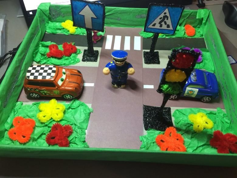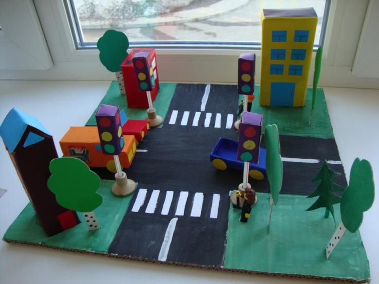 Интересна идея е да се направи път с автомобили и пешеходна пътека с хора. Важно е също така да не забравяте да поставяте светофари и пътни знаци.
