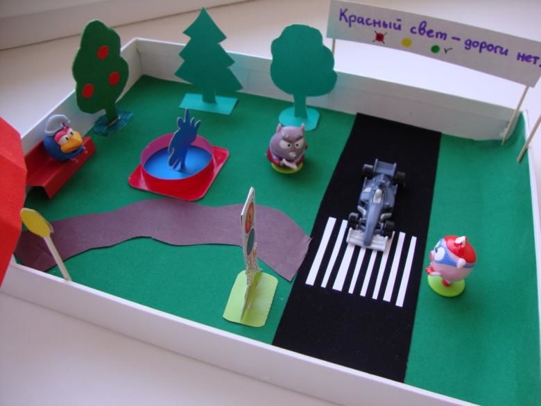 Автомобилите играчки могат да се поставят на пътя. Хората могат да бъдат изработени от яйца Kinder Surprise или от пластилин. Макетът е готов, но можете да го допълвате непрекъснато.