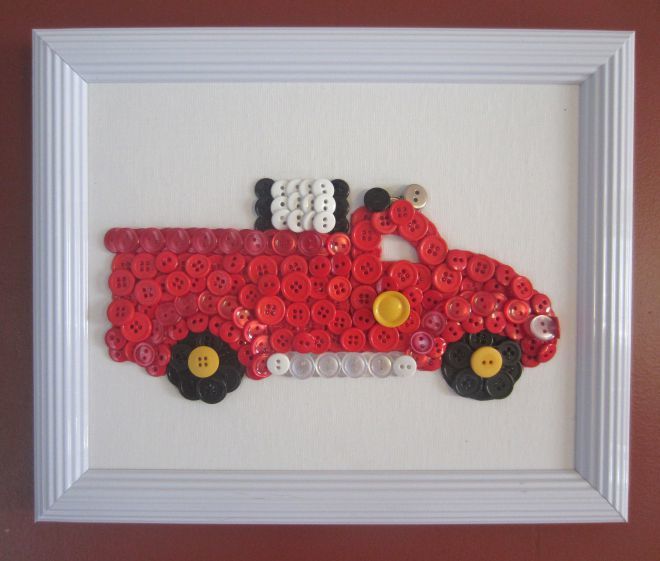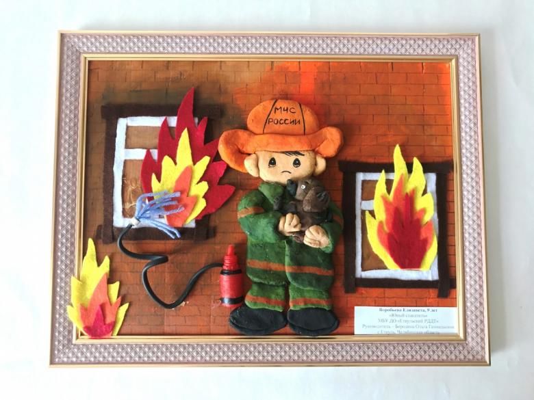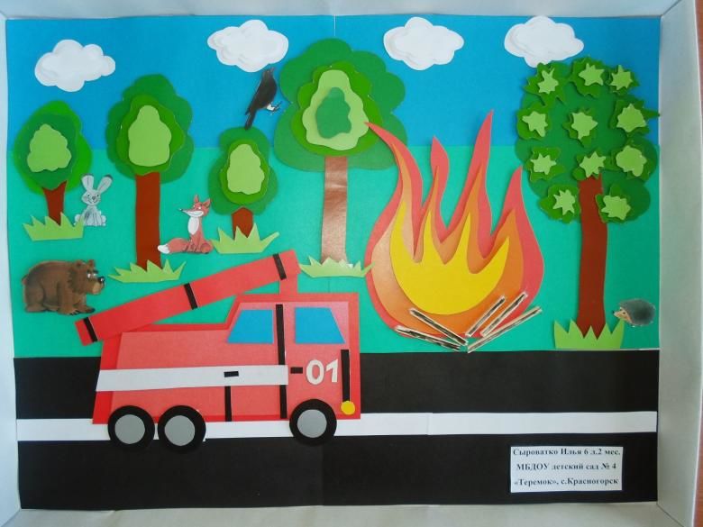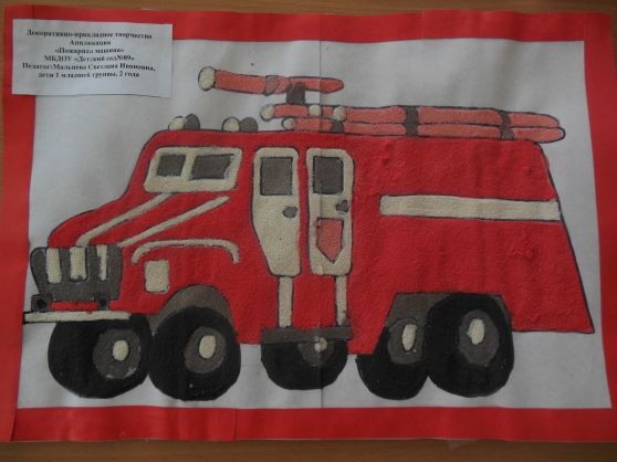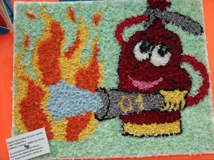 - Алтернатива е апликирането под формата на копчета. Всяка рисунка на тема пожарна безопасност може да бъде направена по този начин.