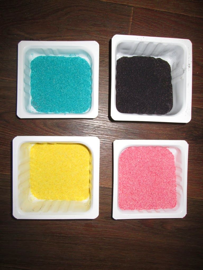 - След като е смесен и напълно оцветен, грисът се изсушава върху хартия.