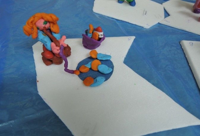 - За повече фигури от пластилин направете риба, топка за игра, слънце и чайки, които се носят над водата.