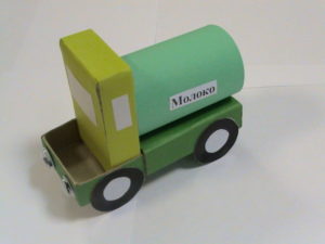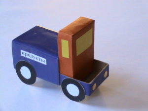 - След това трябва да се изрежат 4 колела. Те се залепват за дъното на кутията, като се оставя лек надвес.