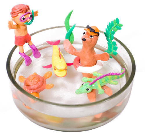 Много е важно да научите детето си на правилата за поведение във водата. За това могат да помогнат глинени фигури, които могат да се използват като визуално средство в играта. Използваните материали са: