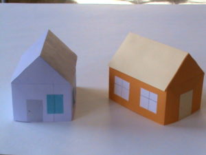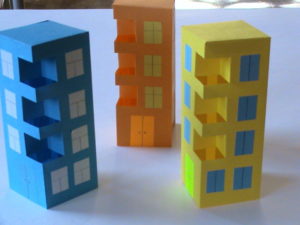 - Поставете пътни знаци (картонени кръгове на крака и стойки) и зелени дървета в близост до къщите.
