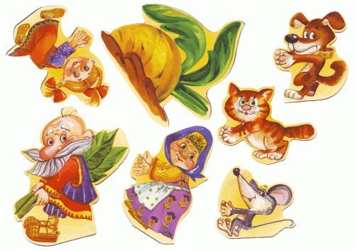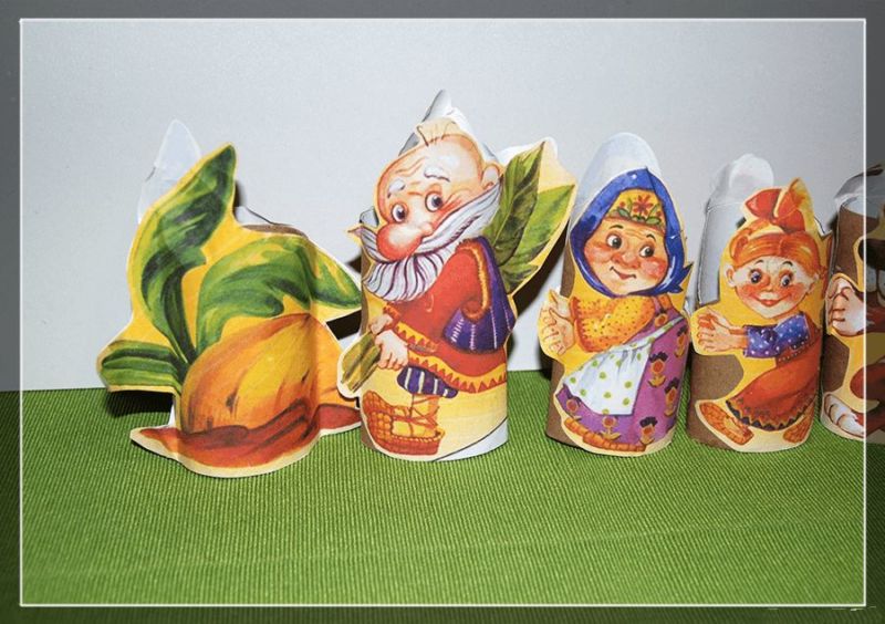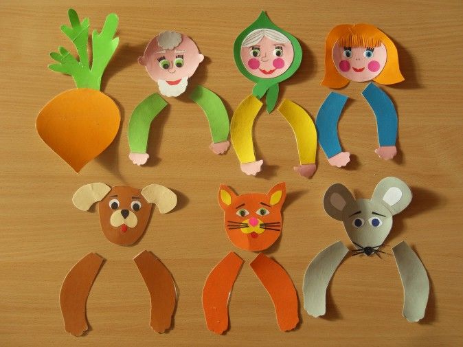 Ряпата и героите могат да се изрежат от картон, да се направят на картонени стойки за конуси и да се поставят в реда, в който са описани в историята. Можете също така да ги оформите от пластилин.