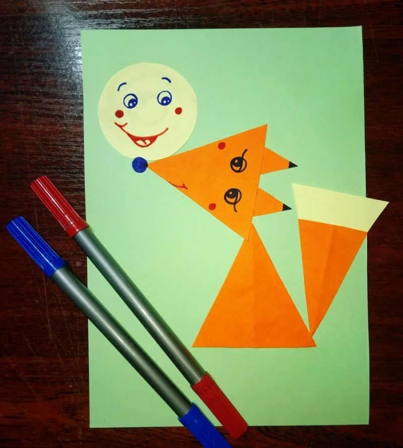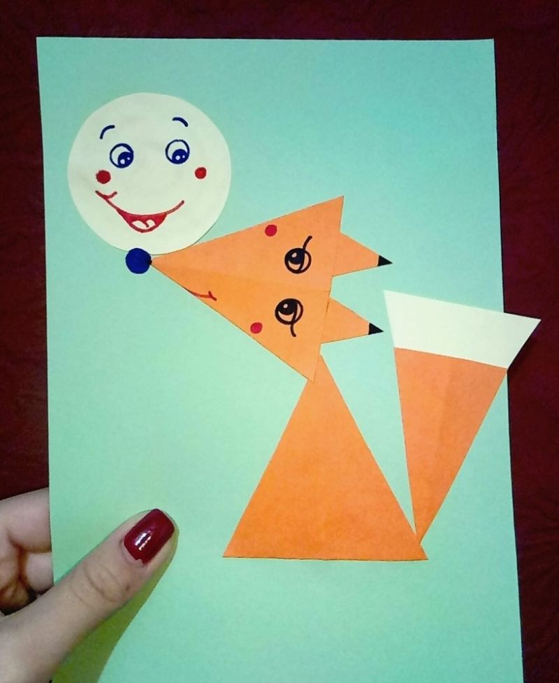 Известният хитър Лис и Колобок, който напуснал баба си и дядо си, може да се въплъти върху плоска повърхност. Този вид работа развива много добре въображението на детето.
