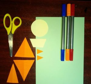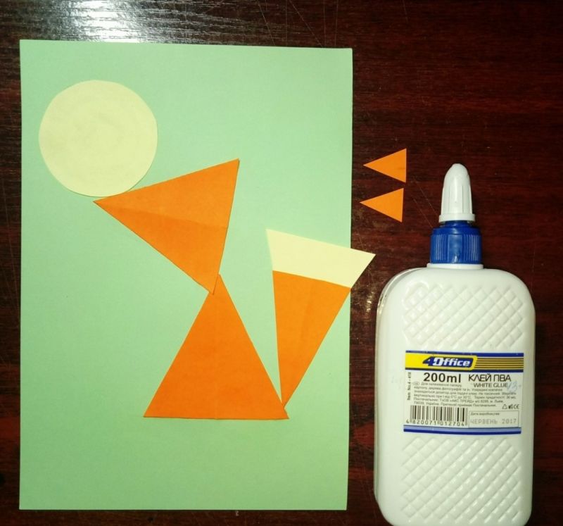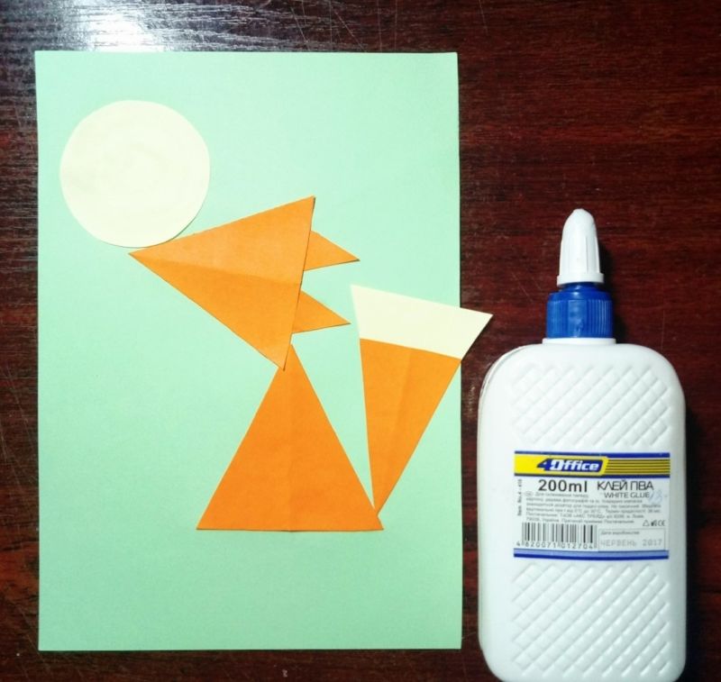 Необходими са ви картон, хартия, бои, четки и лепило. За да улесните рисуването, можете да вземете готова снимка на лисицата и колоса и да пренесете контурите им върху картон.