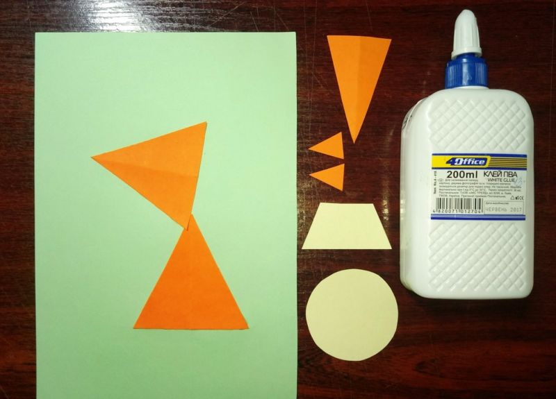 С помощта на цветна хартия може да се направи проста апликация дори от най-малките деца. За целта са ви необходими лепило за хартия, цветна хартия, картон, четки и ножици със заоблени краища, ако правите това с дете: