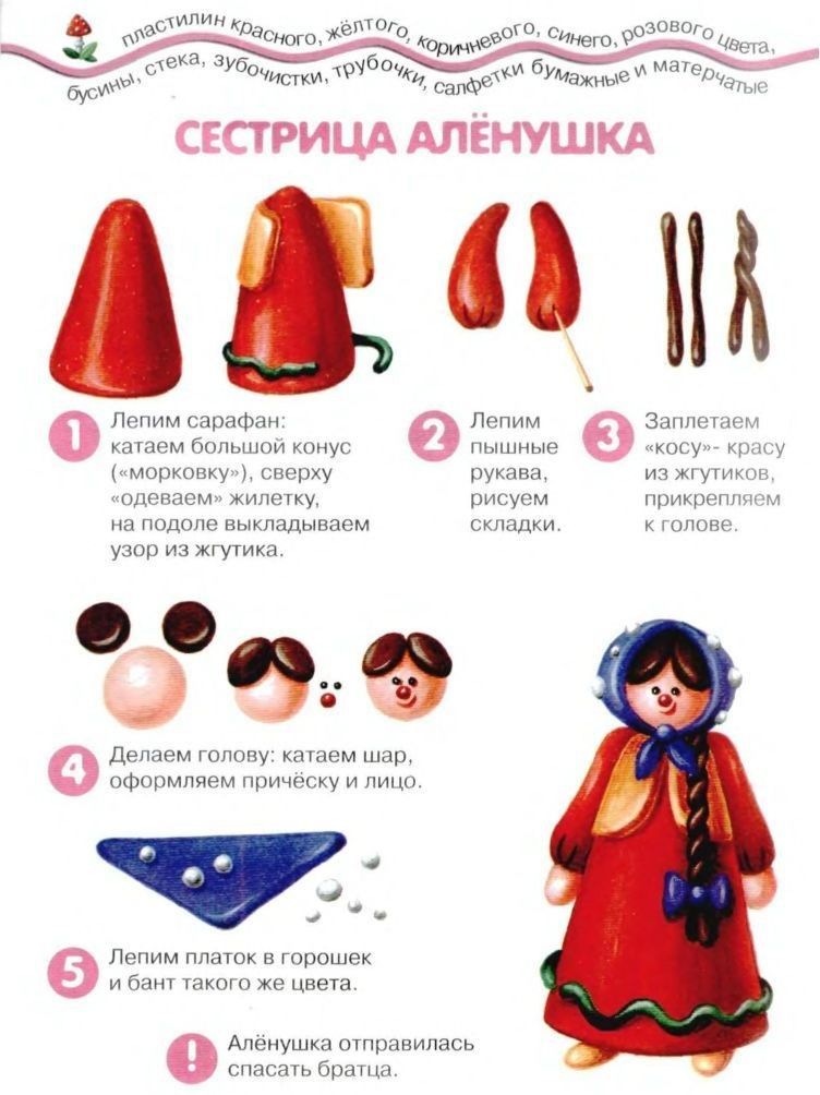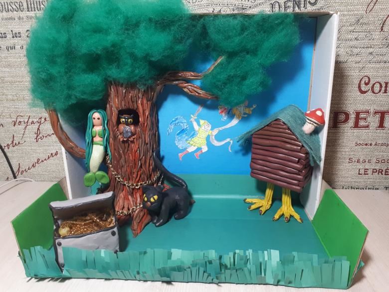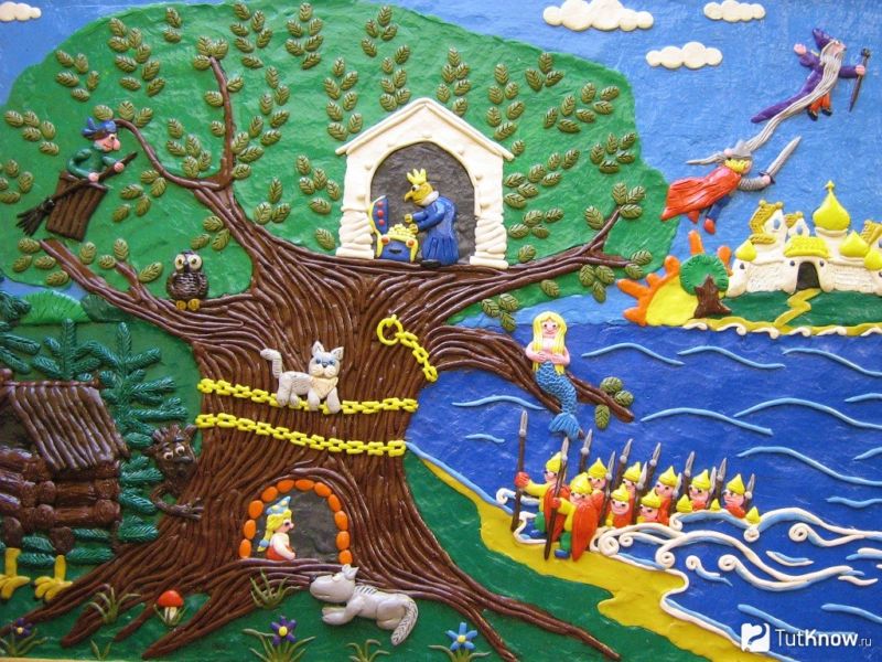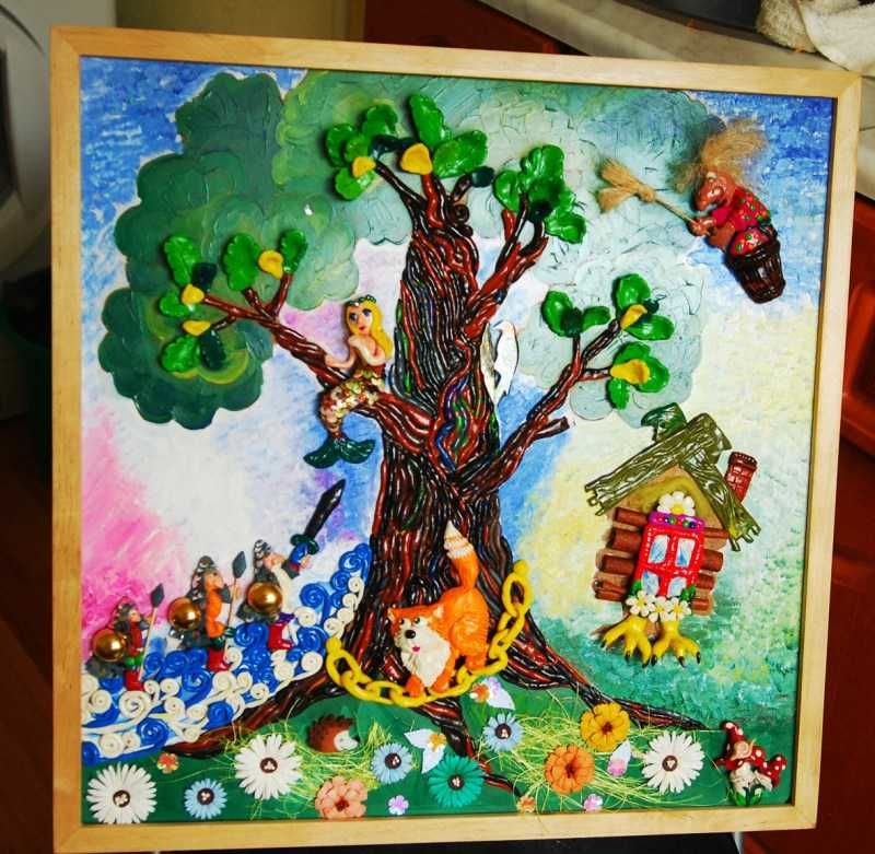 Идеи за създаване на занаяти на тема приказки много, можете да изобразите отделни герои и цели сцени. Занаятите могат да бъдат както плоски като картина, така и обемни като малки скулптури.
