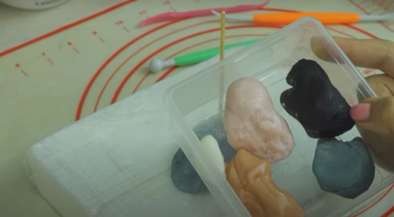 Ако използвате цветна глина, изберете цветовете според картинката.