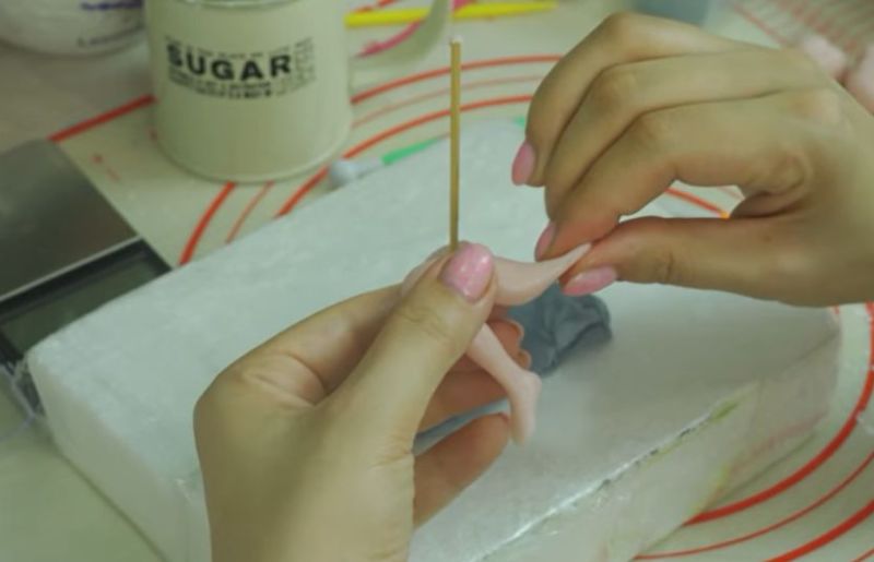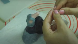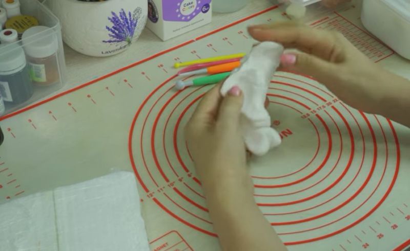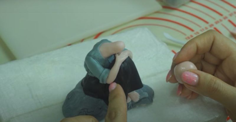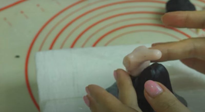 - Детайлите на жабата се оформят отделно от соленото тесто, а фигурата на седящата жаба се оформя от него.