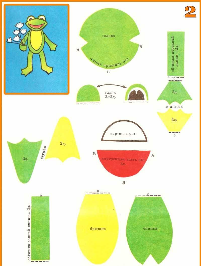 - Тялото на жабата е боядисано в зелено, а коремчето - в светложълт нюанс.