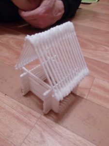 Тъкачен стан с кофичка, изработен от клечки за сладолед
