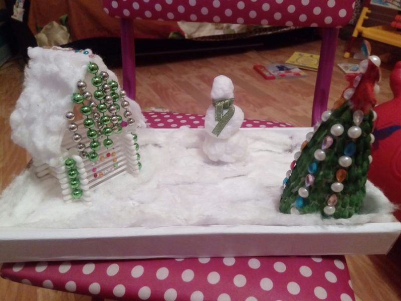 Един много интересен и красив продукт, особено в новогодишната нощ, ще бъде зимна къщичка от памучни вати.