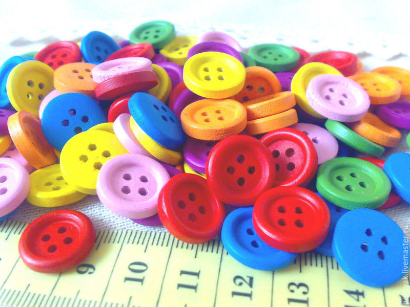 След това изберете копчета според цвета на сезона: за зимата - синьо, бяло и светло люляково, за пролетта - светло розово, светло зелено, светло жълто. За лятото - ярко и тъмнозелено, а за есента - оранжево, червено и яркожълто. Те ще представляват листата на дървото.