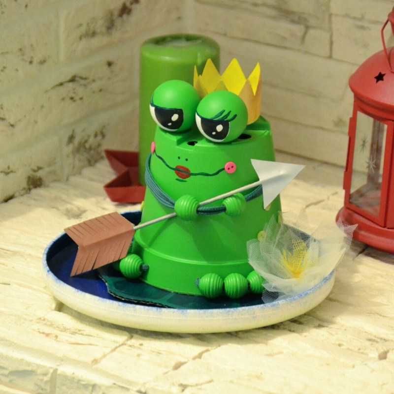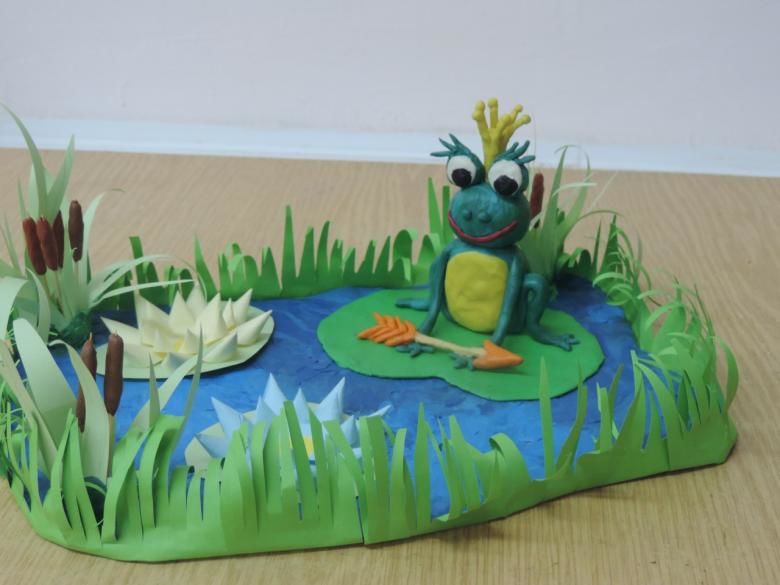 Преди да направите тази композиция, е добре да прочетете с детето тази приказка, за да може то да си представи коя е принцесата-жба и с какво е известна.