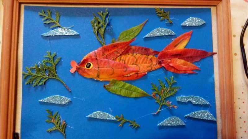 - Изрежете водорасли от цветния картон по страните на рибата и ги поставете отстрани.